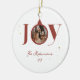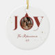 Comemore a época de férias com nosso Enfeites de natal divertido com sua querida foto de família. Esta elegante "Joy" na design de ornamento vermelho combina a estética moderna com o charme personalizado, fazer-a como um perfeito guardião para quem ama. Personalize o texto para adicionar um toque pessoal e compartilhar a alegria da época de Natal em estilo