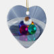 Uma imagem 3D criada em Vue, cheio de reflexões e luzes brilhantes de todas as direções. Cinco esferas coloridas de vidro azul, rosa, turquesa, laranja e diamante permanecem em uma pirâmide cercada por um anel branco translúcido. Eles sentam-se sobre um fundo deslumbrante de raios claros, azuis e brancos que convergem sob as cinco bolas de cristal.