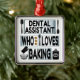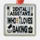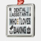 Este design de padeiro com a citação "Dental Assistant Who Loves Baking" em cima das bandejas de biscoitos cercadas por utensílios cozinheiros é perfeito para qualquer Dental Assistant que adora assar.