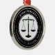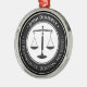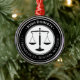 Ornamento personalizável exclusivo com escalas pretas de símbolo de justiça e endereço ao seu redor.