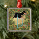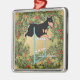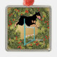 Um Doberman Pinscher facilmente descobre um salto contra um fundo de uma coroa de Natal