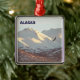 Uma águia careca ao longo da faixa de Chugach coberta pela neve perto de Anchorage, AK. O texto personalizável que lê "ALASKA" também é exibido.