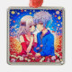 Ornamento De Metal Anime Casal Ama Flores e Corações