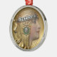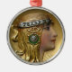 Um ornamento nobre redondo com uma imagem dourada de Art Nouveau de uma jovem que veste uma morada de diamante. Veja a coleção inteira de Gemstones & Medallions Ornament na seção HOME.