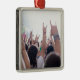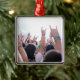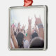 Fotografia de uma audiência do spotlit em um concerto que joga acima os punhos do rock and roll. Rocha sobre!