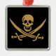 Ornamento De Metal Aztec Dourado Crânio e Cutlass Pirata Calico Jack