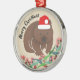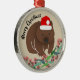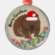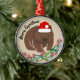 Ventre bebê de Natal vestindo um chapéu santa e um delicado ornamento de goma floresce. Personalize o texto.