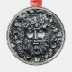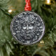 Ornamento de primeira volta com a imagem de um medalhão de prata de Baco, Deus romano do vinho e do fazer de vinho, e loucura ritual no meio de uvas e folhas de uva. Também conhecido como Deus Grego Dionísio. Veja toda a coleção de Ornamento Toga nos TOUCHES ESPECIAIS | Seção Favoritos para festas.