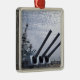Foto do dia nublado do navio de guerra da Segunda Guerra Mundial, o USS Alabama. Legal fotografia para colecionadores de arte marítima e memorabilidades da Segunda Guerra Mundial.