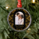 Ornamento De Metal Belo Botânico Casado Foto de Natal Preto