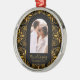 Este belo Enfeites de natal apresenta um elegante arco botânico floral de cor dourada, com fotos e roteiro de Natal na moda casado com o ano em fundo preto. Perfeito para o primeiro Natal do casal recém-casado, como Sr. e Sra. Compram esta loja para coordenar cartões de saudação de Natal, ornamentos e opções adicionais de cor de feriado!