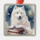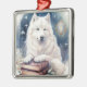 ORNAMENTO DE METAL BELO CÃO BRANCO SAMOÍDO DE FLUFFY