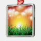 Ornamento De Metal Belo nascer do sol sobre um campo de grama