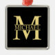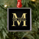 Ornamento De Metal Black and Gold Personalized Monogram and Name