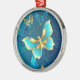 Ornamento De Metal Borboletas de ouro em um fundo azul