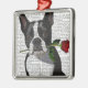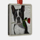 Ornamento De Metal Boston Terrier com Rosa em Boca