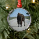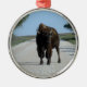Um búfalo está orgulhosa no meio da estrada, ousando o tentar passar perto.