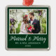 Ornamento De Metal Caligrafia Script Green Casada e Feliz