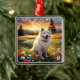 Cão Samoyed sentado em um prado de flores. Puzzles, planejadores, cadernos, enfeites com este design em minhas lojas.. Muitos desenhos de animais de estimação e paisagens em minhas lojas. Adicione este design a outros produtos. Adicionar texto.