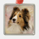 Bonita Sheltie ou Shetland Sheepdog face em uma pintura pastel como um ornamento de cão de fundo