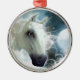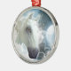 Um cavalo árabe branco ajustou-se contra o contexto da lua e das nuvens