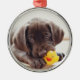 Ornamento De Metal Chocolate Labrador Com Pato De Brinquedo