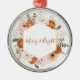 Adicione um toque de festas feito a partir da natureza à sua árvore com este ornamento, com uma coroa macia de fatias de laranja secas, florais de aquarela, samambaias e pinheiros. No centro, "Feliz e Brilho" é escrito em elegante caligrafia, enquadrado por um hexágono geométrico moderno. Um sotaque adorável para comemorações de feriado, este design combina encantos rústicos e botânicos numa paleta aconchegante sazonal. Coordena com peças correspondentes na coleção Citrus and Spice Holiday.