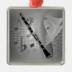 Clarinet com Acentos Musicais. Canvas temática musical moderna, clássica e na moda, com tremendo clave, notas musicais e instrumento musical em destaque; clarinete. Preto e Branco.