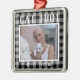 Ornamento De Metal Classic Black Plaid Personalized Cat Mom Photo