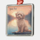 Cockapoo sentado perto de um lago ao pôr do sol. Adicione esta imagem a outros produtos. Adicione seu próprio texto também. Muitos animais de estimação na minha loja.