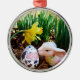 Ornamento De Metal Coelhinho da Páscoa beijando ovo de vaca