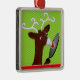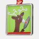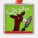 Reé de desenho animado de Natal tocando badminton, segurando uma raquete, com uma obturação no nariz.