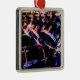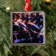 O trabalho de arte nesta Ornamento de Metal é uma fotografia original de um conjunto de tambores. Os tambores pretos brilhantes com suas jantes de prata refletem as cores das luzes do estúdio, azuis, vermelhos e verdes. Os Cymbals acima dos tambores esperam para serem atingidos.
