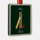 Este ornamento de metal editável inclui equipamento esportivo para o jogo de críquete. Há também um nome e uma data e esses campos são editáveis. Então, vá em frente e mude os detalhes, assim como o estilo da fonte, o tamanho e a cor. A cor de fundo também pode ser alterada. Este é um presente perfeito para o entusiasta do críquete em sua vida! Aproveite seu novo críquete editável com um ornamento Wicket Metal!