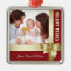 Ornamento De Metal Custom Name & Photo Holiday Red, Gold Bow