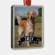 Ornamento De Metal Custom Pet Photo with Year and Paw Ribbon