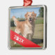 Ornamento De Metal Custom Pet Photo with Year and Paw Ribbon