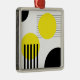 Ilustração abstrata com formas geométricas (círculos e listras) formam decoração em cores amarela e preta sobre fundo branco.