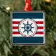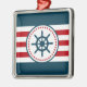 Design náutico com decoração das rodas de vela em forma redonda com estrelas sobre fundo listrado vermelho, azul e branco
