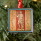 Um ornamento prateado com uma imagem de Dionísio, deus do vinho, fazer de vinho e loucura ritual, com uma taça de uvas, colocada em vermelho entre duas urnas decorativas em ouro. Veja toda a coleção de Ornamento Toga nos TOUCHES ESPECIAIS | Seção Favoritos para festas.