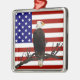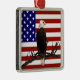 Uma águia careca varreu o céu de sua perca em um galho de árvore; sobreposto a uma bandeira dos Estados Unidos.