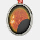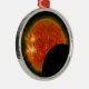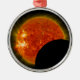 A sombra escura da lua cruza em frente ao sol durante um eclipse solar capturado no espaço e aprimorado nessa imagem.