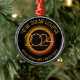 Personalizável 2024 TOTAL SOLAR ECLIPSE Metal Ornament em PRETO, com TEXTO PERSONALIZÁVEL, para celebrar o Total Solar Eclipse sobre os EUA, Canadá e México Continental em 8 de abril de 2024. O TEXTO PERSONALIZÁVEL lê TOTAL SOLAR ECLIPSE e [FAMILY NAME] Watch Party. Você pode usar o campo de texto curvo superior para uma frase mais longa, se necessário (e excluir o texto curvo inferior). A design mostra um eclipse solar com efeito dourado 2024 no meio. Comprar este eclipse solar Ornament Metal como uma lembrança para toda a família ou para os seus convidados de festas! A totalidade valerá a pena! Também em preto.