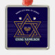 Celebrate the Festival of Lights with this elegant Hanukkah ornament featuring a golden Star of David and menorah on a deep blue background. Available in a square silver metal frame and multiple other shapes and sizes, it’s perfect for decorating your home, adding to a gift, or giving as a keepsake. Personalize it with your family name or custom text to make a meaningful holiday accent.