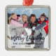 Ornamento De Metal Família Foto Feliz Natal Quadrado Script Pincel