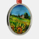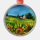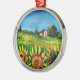 Paisagem da Toscana, cor, vibrante e expressiva beleza da flora e campos de Verão italianos em laranja amarelo vivo, verde, castanho, cor azul, lindas flores, ciprestes e oliveiras, antiga casa de fazenda rustica sob o céu azul.Pintura acrílica em canvas.