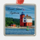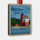 Enfeites de natal com uma foto HDR de The Round Island Light, também conhecida como "Old Round Island Point Lighthouse" em Michigan, da ilha Mackinac. Procurando mais impressões ou produtos? Sinta-se livre para visitar minha loja: http://www.zazzle.com/timelessmomentsphtgy Esta foto foi tirada por Jennifer White com Fotografia Moments Eterno. Todas as imagens são protegidas por copyright © Moments Eterno Photoographic.
