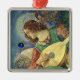 Design elegante e clássico elaborado a partir de uma pintura Renascentista. Melozzo da Forli, anjo musical em cores verdes azuis, detalhe de um afresco c.1480 com uma pedra brilhante de safira azul 3D.