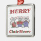 Três camundongos de Natal com presentes de Natal e texto vermelho e verde que diz "Feliz Chris-Mouse" em guardar ornamentos de férias para decorar sua árvore ou dar presentes!
