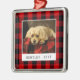 Ornamento De Metal Feriado de Fotos de Pet da Xadrez Vermelha